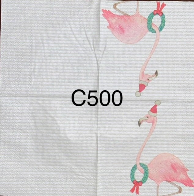 Christmas (C500) - Flamingo with Santa Hat and Wreath Around Neck