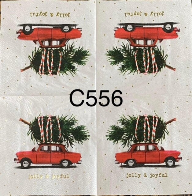 Christmas (C556) - Red Car with Tree Tied on Roof