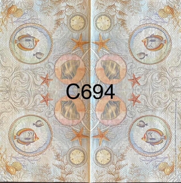 Beach (C694) - Fish, Shell, Sand Dollar in Circles