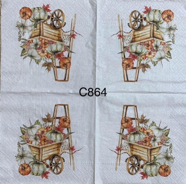 Fall (C864) - Wagon with Pumpkins and a Ladder 864