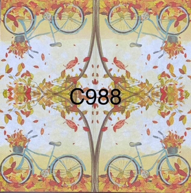 Fall (C988/1038) - Blue Bicycle with Autumn Leaves in Basket
