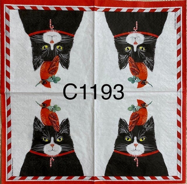 Cats (C1193) - Black Cat with Cardinal on Head