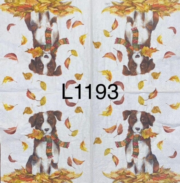 Dogs (L1193) - Fall Dog with a Pile of Leaves