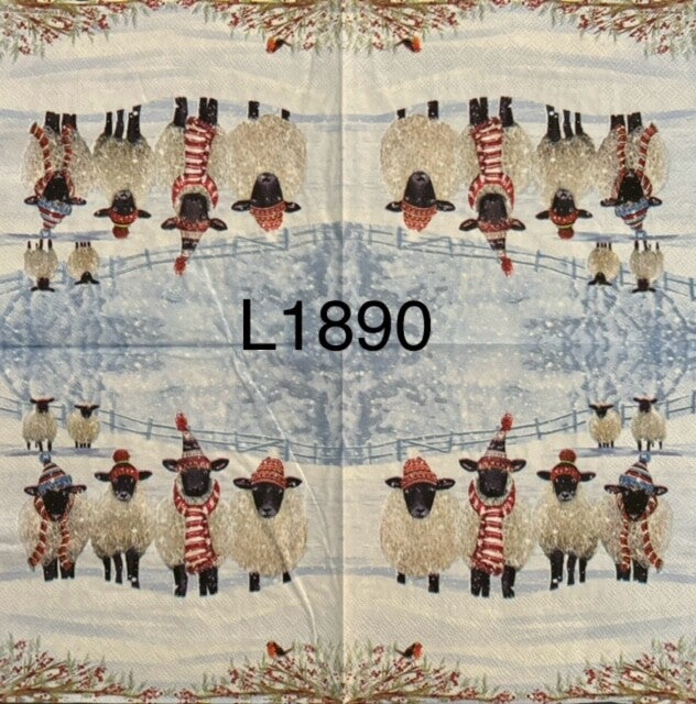 Christmas (L1890) - Four Sheep with Hats and Scarves