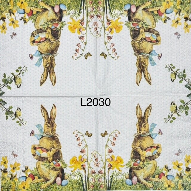 Easter (L2030) - Bunny Standing in Yard with Baskets Full of Eggs
