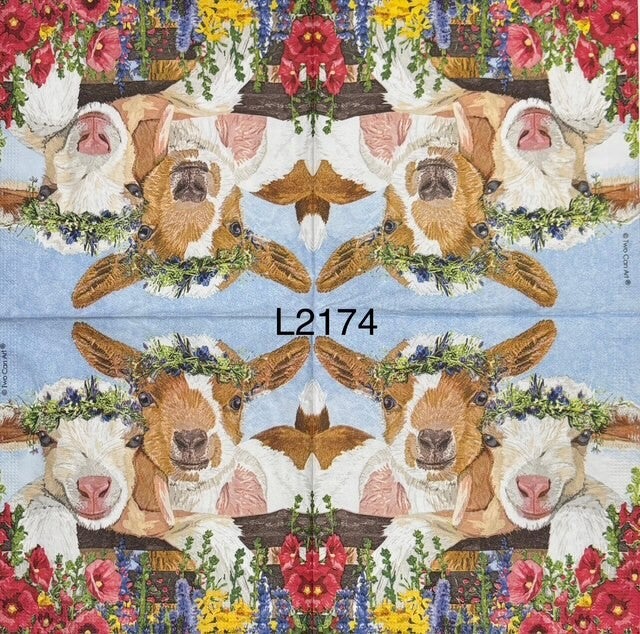 Animals (L2174) - Two Goats with Flower Headpiece by Fence