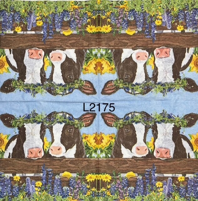 Cows (L2175) - Two Cows with Flower Headpiece by Fence