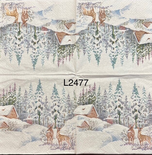 Deer (L2477) - Deer Couple Standing Outside of House Covered in Snow