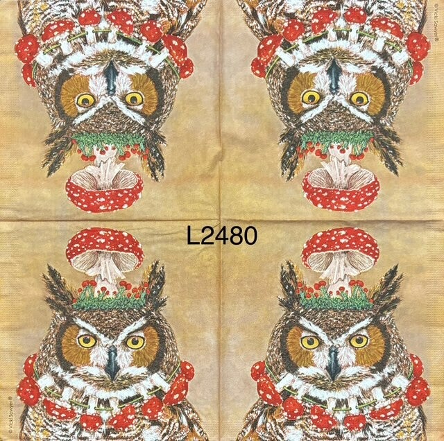 Birds (L2480) - Owl with Red Mushroom on Head and Mushroom Necklace