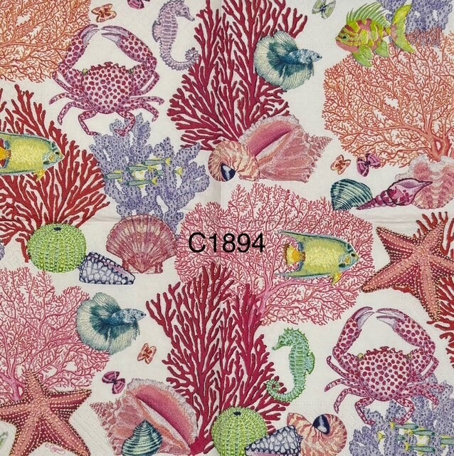 Beach (C1894) - Crabs, Seahorse, Angel Fish, Coral, Shells, Starfish (Very Colorful)