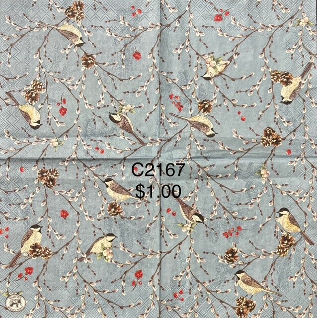 Winter (C2167) - MDW Willows with Red Flowers and Birds on Branches on a Blue Background