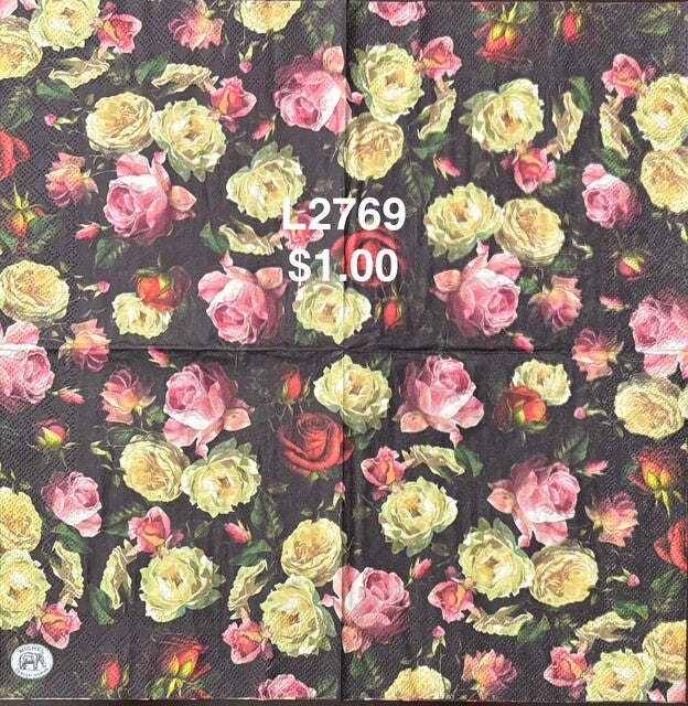 Flowers (L2769) - MDW White, Red and Pink Roses on Black Background