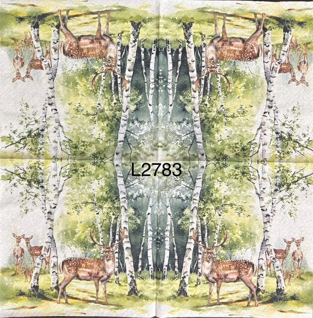 Deer (L2783) - Birch Forest with Buck and Two Deer